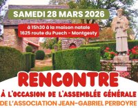 Toutes et tous sont invités à participer à l’ASSEMBLÉE GÉNÉRALE qui se tiendra à la maison natale de Jean-Gabriel Perboyre, 1625 route du Puech / 46150 Montgesty, SAMEDI 28 MARS 2026 à 15h30